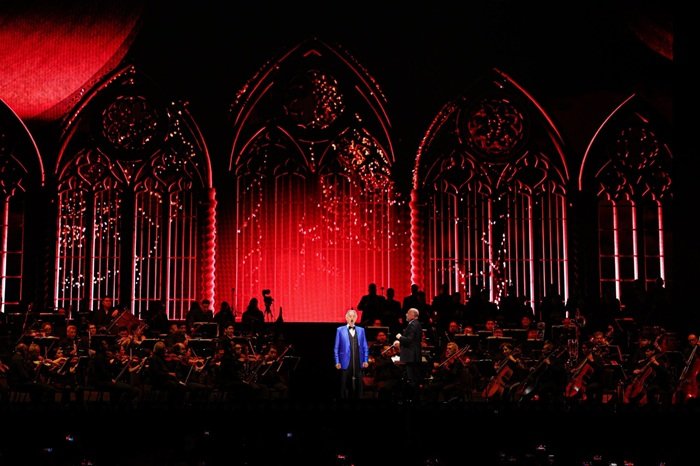 Uno de los momentos más destacados llegó con la participación de la soprano Larisa Martínez, quien, junto a Bocelli y Heredia, interpretó fragmentos de Il trovatore, logrando una ejecución coral que fue ampliamente ovacionada. La potencia de estas piezas se vio complementada con la interpretación de Carmina Burana, que aportó una dimensión épica al programa.