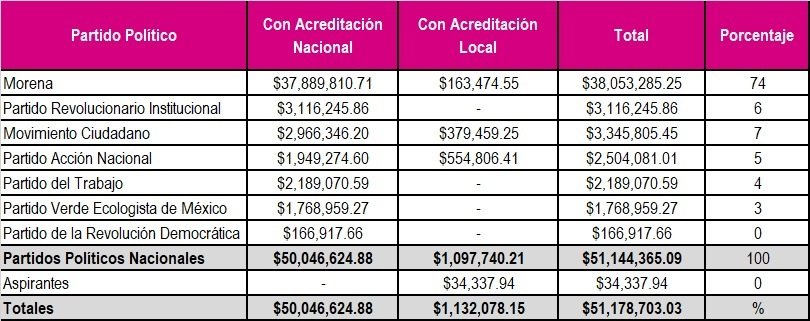 Las sanciones derivadas de la revisión de informes de ingresos y gastos y de los dictámenes tanto federales como locales, aprobados este día en la sesión del Consejo General ascienden a casi 51.2 millones de pesos, como se desglosa a continuación: