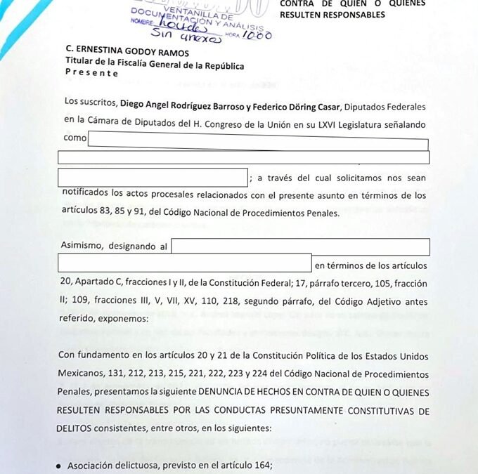 La acción jurídica ocurre luego de que el gobierno federal señalara públicamente que no iniciaría investigaciones de oficio al considerar que “la narrativa no es suficiente” sin denuncias formales. Con la presentación de esta denuncia, los diputados subrayaron que ahora existen elementos procesales que obligan al Ministerio Público a actuar conforme a derecho y sin dilaciones.