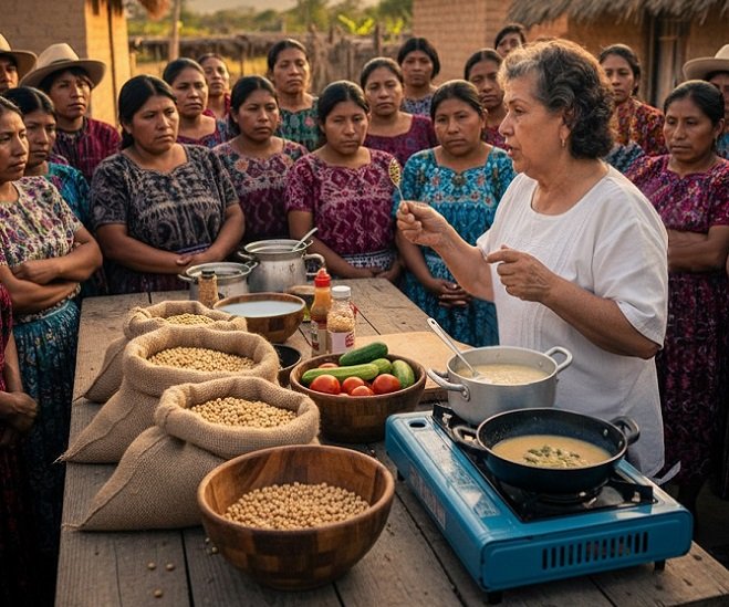 Sin embargo, la historia de la soya en México tampoco puede entenderse sin el nombre de Andrea Alicia Álvarez Ursúa, nacida el 9 de diciembre de 1928 en Tetipac, municipio de Taxco, Gro, figura esencial en el aterrizaje práctico del proyecto. Titular de la cocina experimental en el Colegio Superior Agropecuario del Estado de Guerrero (CSAEGRO) durante más de dos décadas, ella convirtió la investigación científica en una herramienta cotidiana. Elaboró más de 250 recetas y dirigió más de 500 cursos dirigidos a comunidades rurales, amas de casa, promotoras del DIF y personal de salud. Su propósito fue claro: dignificar la dieta popular sin romper con la tradición culinaria del país.