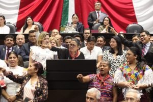 “Hoy, frente a todos los representantes del pueblo de México y frente a nuestra bandera, lo digo con el corazón en la mano, vamos a construir el México que soñamos y merecemos”, dijo entre gritos de legisladores que coreaban ¡Presidenta, Presidenta, Presidenta!
