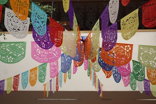 El Día de Muertos se llena de color con el uso de la flor de cempasúchil y los diseños de papel picado, elemento infaltable en estas fechas y no se puede imaginar una fiesta popular sin estas singulares banderitas de papel con vivos colores colgadas y movidas por el viento.