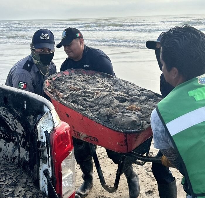 Asimismo, se informó la atención de aproximadamente 40 kilómetros de litoral en playas ubicadas en los municipios de Tamiahua, Cazones de Herrera y Tuxpan, donde se han efectuado labores de recolección manual de residuos petrolizados, con la participación de Personal Naval, DEFENSA, Guardia Nacional, autoridades municipales y Capitanías de Puerto de Tamiahua, Cazones de Herrera y esta Ciudad, Comisión Nacional de Áreas Naturales Protegidas (CONAPNP), Universidad Veracruzana, Protección Civil, voluntarios de grupos tortugueros, prestadores de servicios y diversas dependencias e instituciones.